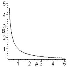 На диаграмме Вышнеградского рис. 6.7 кривая, называемая гиперболой Вышнеградского, является границей устойчивости, и она делит область возможных значений коэффициентов А и В на две части, одна из которых является областью устойчивости. Для обнаружения этой области рассмотрим заведомо устойчивую систему, корни характеристического уравнения которой
