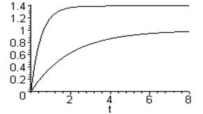 где р1, р2, … рn – корни характеристического уравнения. Время переходного процесса определяется тем, как быстро стремится к нулю общее решение, то есть члены вида Ckexp(рkt). Скорость приближения к нулю каждого из них зависит от вещественной части соответствующего корня. Если рассмотреть характеристическое уравнение системы первого порядка (например, объекта регулирования), имеющего единственный вещественный корень