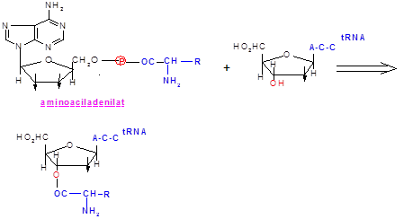 2. На следующем этапе аминоацильный остаток переносится на 3¢-ОН- группу концевого остатка рибозы в молекуле тРНК.
