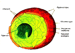 · ядерную оболочку, отделяющую ядро от цитоплазмы. Она состоит из двух мембран – наружной и внутренней – между которыми находится узкое пространство, заполненное полужидким веществом. Мембраны имеют трехслойное строение. В ядерной оболочке находится большое количество мельчайших пор, через которые из ядра в цитоплазму и обратно поступают белки, углеводы, жиры, НК, вода, разнообразные ионы, т.е. осуществляется непрерывный обмен между ядром и цитоплазмой.