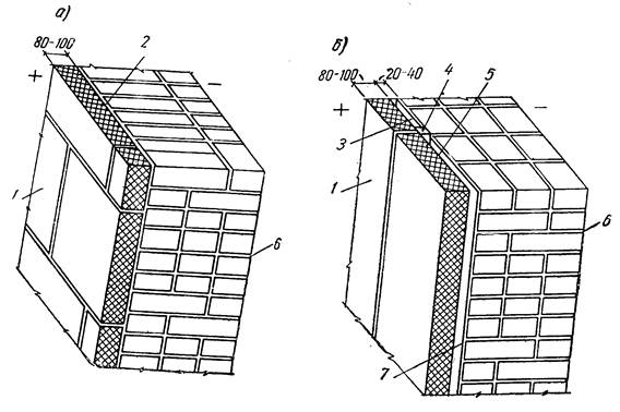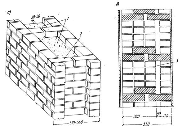 а – кладка колодцевая, б – кладка с воздушной прослойкой;