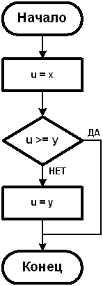 Пример 3. Выбрать максимальное из двух чисел x, y и присвоить его значение переменной u.