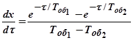 Передаточная функция такого ТОУ может рассматриваться как произведение передаточных функций двух апериодических объектов с постоянными времени Тоб1 и Тоб2. Переходная функция определяется выражением
