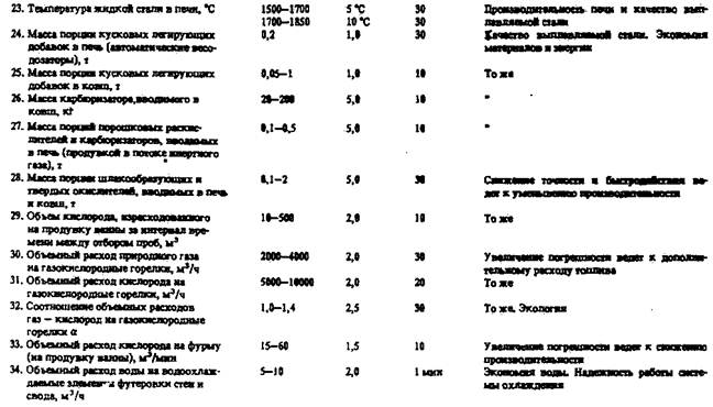 Анализ этих и ряда других возмущающих факторов, однако, указывает, что только некоторые из этих возмущений оказывают существенное влияние на сам процесс плавки и на конечный её результат – получение сплава заданного химического состава, температуры и т.д.