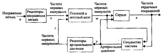 Специалистам медицинских профессий существенную помощь оказывают модели физиологических систем управления. Одна из них – система управления частотой сердечных сокращений – приведена на рис.5.25.