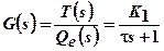 Чтобы упростить анализ, предположим, что расход V постоянен. Применяя к последнему уравнению преобразование Лапласа и решая его относительно T(s), получим: