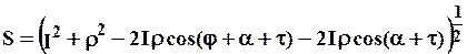 где B1 и В – начальное и промежуточное положение точки соединения штока и кузова, перемещающейся по радиусу l на угол φ; ρ – расстояние между точками крепления кузова и подъемника к надрамнику.