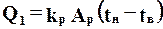 Значения Q1, Q2, Q4 и Q7 определяются по формулам, приведенным выше, причем в них при определении Q1 и Q2 tн, iн и tв, iв меняются местами (поток направлен в другую сторону), а КПД обогревателя принимают ηоб = 0,83–0,87.