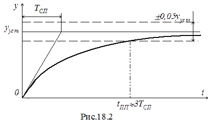Постоянную времени ТСП можно найти из графика переходного процесса, если провести касательную к графику из начала координат.