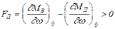 Пусть частота вращения случайно уменьшилась до величины w5. При этой частоте момент вращения ГД будет определяться точкой 5, а момент сопротивления винта - точкой 8. Так как вращающий момент больше момента сопротивления, то система будет ускоряться и частота вращения будет возрастать. Аналогично при случайном увеличении частоты вращения до значения w2 в системе будет снижаться частота вращения, так как вращающий момент ГД в точке 9 будет меньше момента сопротивления винта в точке 2. Система будет устойчива при любом отклонении частоты от w0. Здесь устойчивость определяется взаимным расположением в точке пересечения 0 механической характеристики ГД и винтовой характеристики ВРШ. Как видно из рис.21.1, в точке 0 наклон винтовой характеристики больше наклона механической характеристики ГД. Следовательно, условие устойчивости режима, определяемого точкой 0 пересечения винтовой и механической характеристик является положительность так называемого фактора устойчивости ГД, определяемого выражением