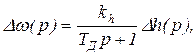При скачкообразном изменении Dh, которому соответствует изображение по Лапласу вида Dh(p)=Dh/p (табл.2.1), изображение переходного процесса для Dw(p) будет следующим