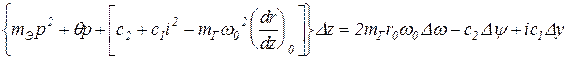 Если обозначить через w0, МД0, МВ0, l0, h0 и z0 начальные значения параметров работы ГД, а через Dw, DМД, DМВ, Dl, Dh и Dz величины отклонений w, МД, МВ, l, h и z от начальных значений, то линеаризованное уравнение будет иметь вид