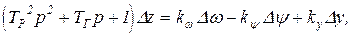 По любому из входных сигналов Dw, Dy и Dy датчик скорости в составе САУ представляет собой динамическое звено 2-го порядка.