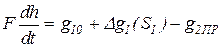 Зависимость g2CB(h,S2) в общем случае нелинейная, непрерывная и не имеют угловых точек как на рис.33.1. Величина изменения притока Dg1(S1) принимает два значения: 0 или Dg1MAX. При малых изменениях h и S2 возможна линеаризация только линейных членов h и g2CB(h,S2) уравнения (33.2)