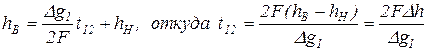 По истечении времени t12 будет достигнут уровень hB, что согласно (34.3) запишется как