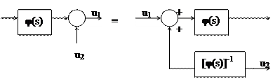 Если точка суммирования переносится против направления сигнала, то в переносимую ветвь нужно включить элементы с обратными передаточными функциями всех элементов, встречающихся на пути между новой и прежней точками съема.