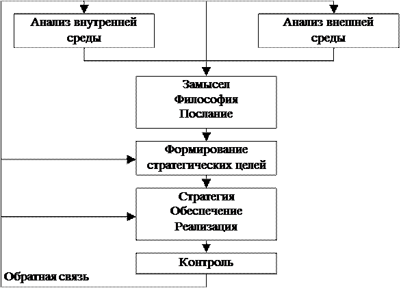 Четко сформулированное послание, предпринимательская философия и основной замысел – не единственные источники информации для формирования стратегических целей. Чрезвычайно важна информация о внутренней и внешней среде, предполагаемой динамике рынка, конкуренции и остальных факторах окружающей обстановки. Процесс постановки стратегических целей представлен на рис. 2.