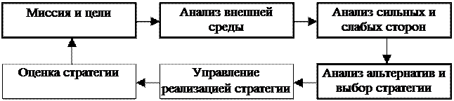 Планирование стратегии организации, с одной стороны, является подсистемой стратегического управления, с другой – оно представляет сущностную основу процесса стратегического планирования, которое отличается от него лишь этапами реализации и последующей оценки стратегии. Поэтому в дальнейшем изложении допускается отождествление понятий "планирование стратегии" и "стратегическое планирование".