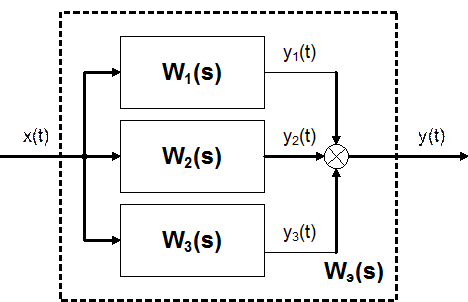 Y(s) = Y1(s) + Y2(s) + Y3(s) = W1(s)·X(s) + W2·X(S) + W3(s)·X(s) =