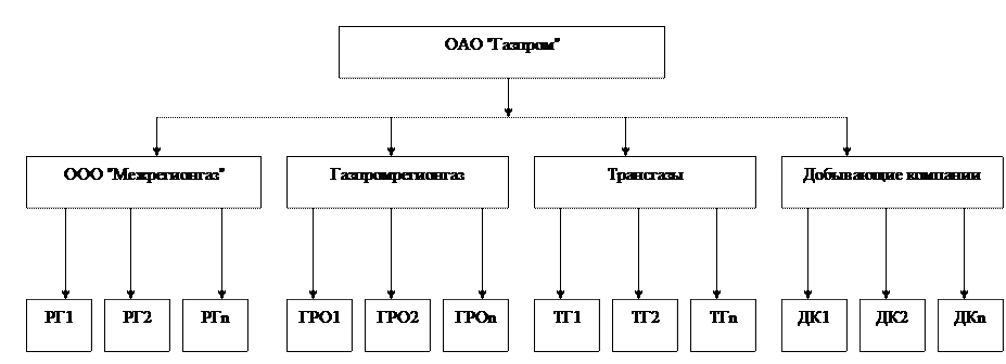 Газ, приходящий по газопроводам в Санкт-Петербург, добывается за тысячи километров от города в газоносных районах Сибири. Добычей газа занимается ОАО "Газпром" и его дочерние компании. Организационная структура представлена на рис. 38.