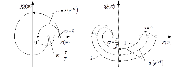 Критерий Найквиста для импульсных систем формулируется так же, как и для непрерывных систем: система устойчива, если АФХ W (