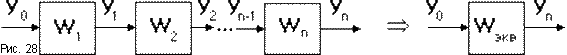 1. Последовательное соединение (рис.28) - выходная величина предшествующего звена подается на вход последующего.