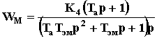 Аналогичным образом выводится передаточная функция генератора постоянного тока, которая с учетом пренебрежения индуктивностью обмотки якоря имеет вид, показанный на рис.40, где