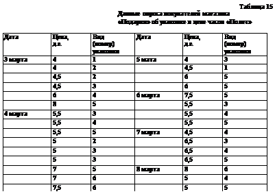 Результаты опроса 30 покупателей приведены в табл. 15.