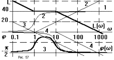 Порядок построения ЛАЧХ и ЛФЧХ показан на рис.57.