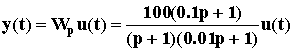 Здесь ЛАЧХ может быть представлена суммой ЛАЧХ четырех типовых звеньев: пропорционального W1 = 100, апериодического W2 = 1/(p + 1), форсирующего W3 = 0.1p + 1 и апериодического W4 = 1/(0.01p + 1).