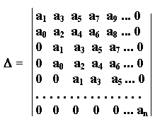 n-1 = 0 говорит о том, что система находится на границе устойчивости. При этом либо an = 0 - при выполнении остальных условий система находится на границе апериодической устойчивости, либо предпоследний минор