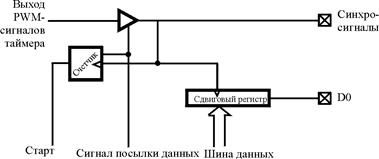 Если синхронный последовательный порт встроен в микроконтроллер, то передающая схема имеет вид. показанный на рис 2.34.