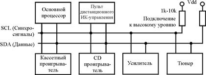 Шина I2C для управления стереосистемой может иметь вид, показанный на рис. 2.37.
