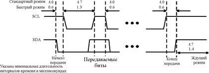 Существует две максимальные скорости передачи данных по шине I2С: «стандартный режим» - до 100 Кбит/с и «быстрый режим» - до 400 Кбит/с (рис. 2.40).