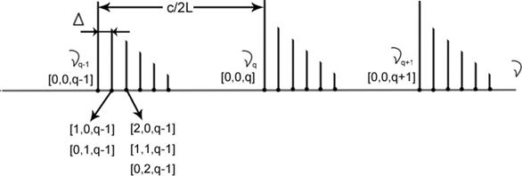 Частотный спектр – это множество (дискретный ряд) собственных частот мод резонатора.