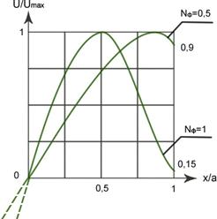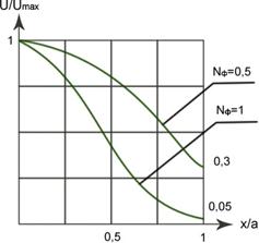 Для иллюстрации решения резонатора рассмотрим график распределения поля на зеркале резонатора для двух числе Френеля.