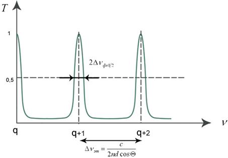 (Можно изменять ширину резонанса, меняя расстояние d или угол Θ. На этом принципе основаны перестраиваемые фильтры.)