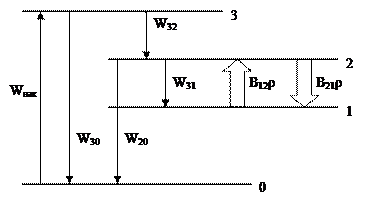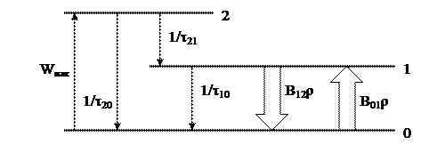 -вероятность заселения уровня 1 с учетом уровня 2 и его населения.