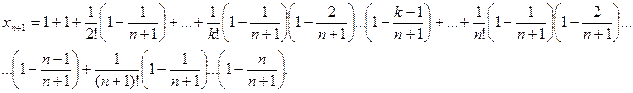 Каждое слагаемое в выражении xn+1 больше соответствующего значения xn, и, кроме того, у xn+1 добавляется еще одно положительное слагаемое. Таким образом, последовательность {xn} возрастающая.