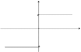 Эта функция также обозначается sign(x) – знак х. В точке х = 0 функция не определена. Т.к. левый и правый пределы функции различны, то точка разрыва – 1 – го рода. Если доопределить функцию в точке х = 0, положив f(0) = 1, то функция будет непрерывна справа, если положить f(0) = -1, то функция будет непрерывной слева, если положить f(x) равное какому- либо числу, отличному от 1 или –1, то функция не будет непрерывна ни слева, ни справа, но во всех случаях тем не менее будет иметь в точке х = 0 разрыв 1 – го рода. В этом примере точка разрыва 1 – го рода не является устранимой.