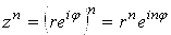 Эта запись называется показательной формой комплексного числа. Так же, как и в тригонометрической форме, здесь