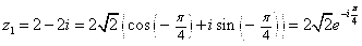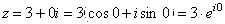 Эта запись называется показательной формой комплексного числа. Так же, как и в тригонометрической форме, здесь