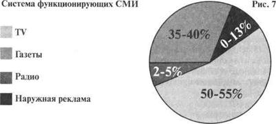 Однако рынок СМИ, как и любой другой рынок, находится в состоянии постоянной трансформации. Структура действующих СМИ меняется в зависимости от существующей геополитической и экономической ситуации. Предсказать, как трансформируется структура существующих СМИ, достаточно сложно. Например, в 1999 году в Европе прогнозировался спад печатных СМИ и рост популярности телевидения, а в реальности сложилась обратная ситуация – объем тиражей печатных СМИ увеличился и они выступили достойным конкурентом телевидению. Соответственно те, кто сделали ставку на телерекламу, понесли убытки, в то время как компании, работавшие с печатными СМИ, получили максимальный результат без дополнительных затрат, а за счет изменения структуры функционирующих СМИ.