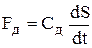 - Fд – сила со стороны демпфера, пропорциональная скорости движения муфты: