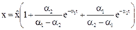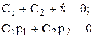 где C1 и C2 – постоянные интегрирования, p1 и p2 – корни характеристического уравнения