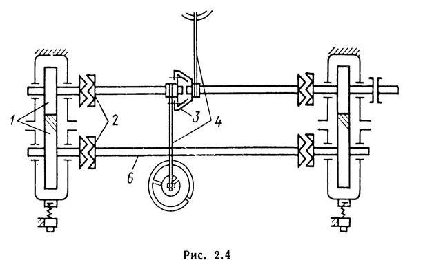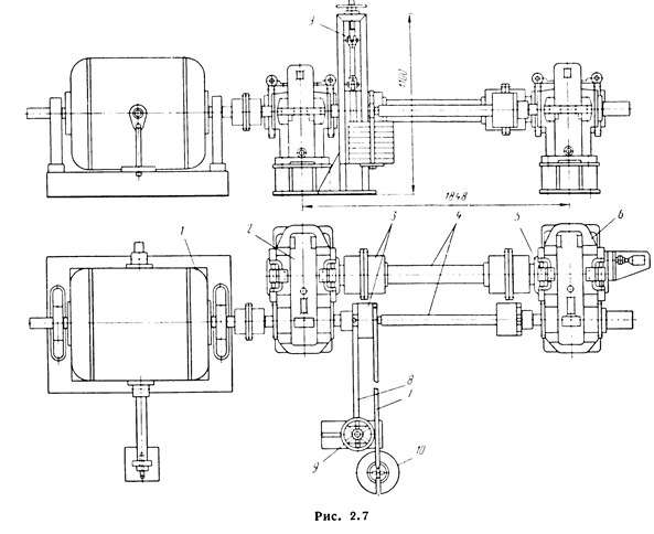 Тормозные многоредукторные стенды выполняют с механическим (рис. 2.88, а) и электрическим (рис. 2.88, б) торможением.
