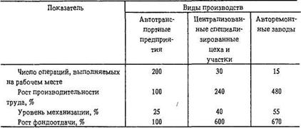 2. возможность осуществления специализации по видам ТО и ремонта, что дает возможность быстрее внедрять прогрессивные технологические процессы, повышать качество ТО и ТР и производительность труда;