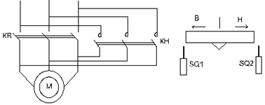 Схема автоматизации возвратно-поступательного движения представлена на рисунке 2.14, где приняты обозначения: SQ1, SQ2 – конечные выключатели.