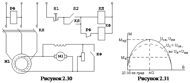 На рисунке 2.31 приняты обозначения:U – напряжение на статоре; Е – ЭДС в роторе; q = (25¸300) соответствует Мн.
