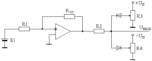 Принцип классического ограничения состоит в том, что для ограничения выходного сигнала на заданном уровне на вход ОУ следует подавать сигнал в противофазе с задающим.